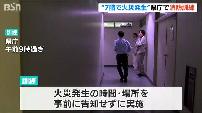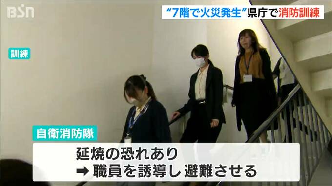 新潟県職員の防災意識を高めるため21日、新潟県庁で火災が発生したことを想定した消防訓練が行われました。