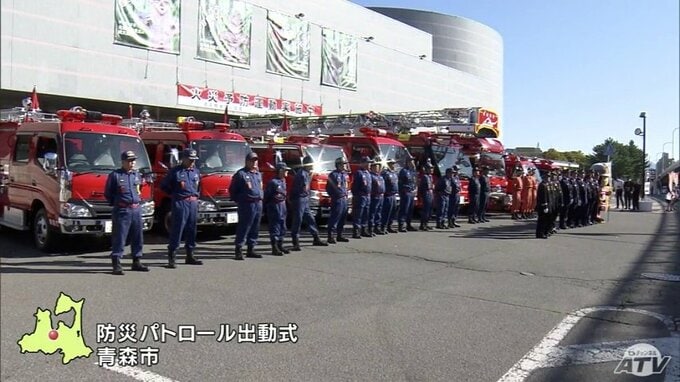 このうち青森市で行われた「防災パトロール出動式」には、青森市と東津軽郡の4町村を管轄する青森消防本部の職員と消防団の団員、合わせて34人が参加しました。