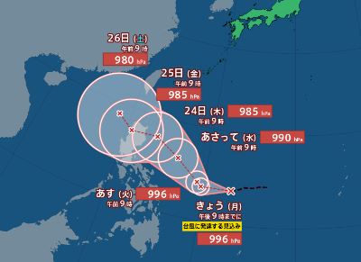 中心気圧:996ヘクトパスカル