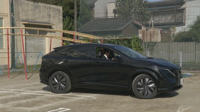日産自動車が制作した車と、社会の関わり方を学ぶ教材を活用したもので、児童らは電気自動車や自動運転技術について意見を交換したほか、電気自動車が自動で駐車する様子を見学しました。