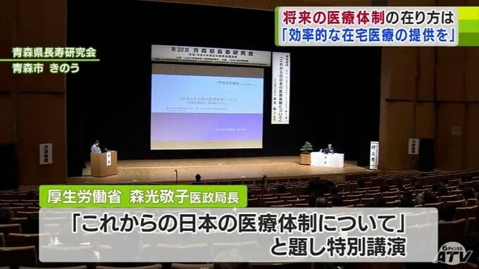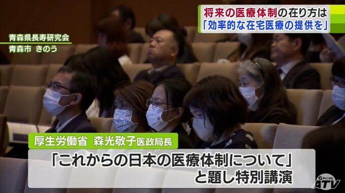 青森市で開かれた青森県長寿研究会には、県内の医療や介護、福祉関係者などが出席し、厚生労働省の森光敬子医政局長が「これからの日本の医療体制について」と題し特別講演しました。