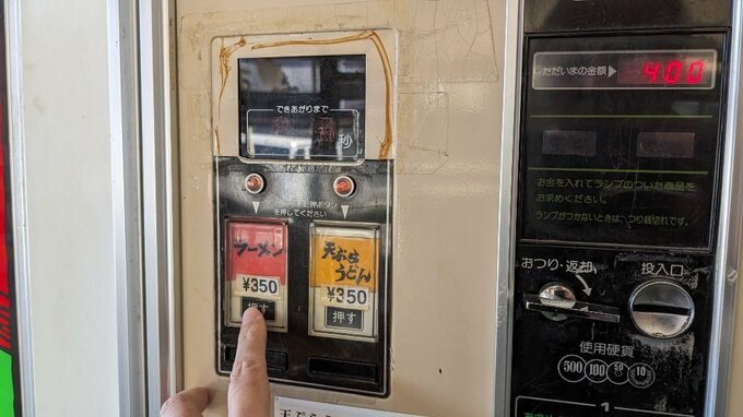 さて、中でも一番気になった「天ぷらうどんとラーメン」の自販機の前に。