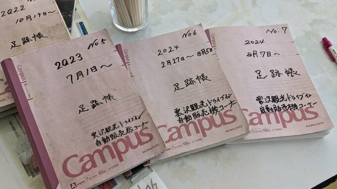 また、このテーブルにはノートが置いてあり、訪れた人がいろんなメッセージを書き残しています。