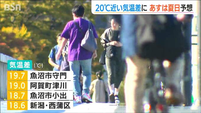 新潟地方気象台によりますと、寒気や放射冷却の影響で、朝は気温が下がった一方、日中はよく晴れて気温が上がったためだということです。