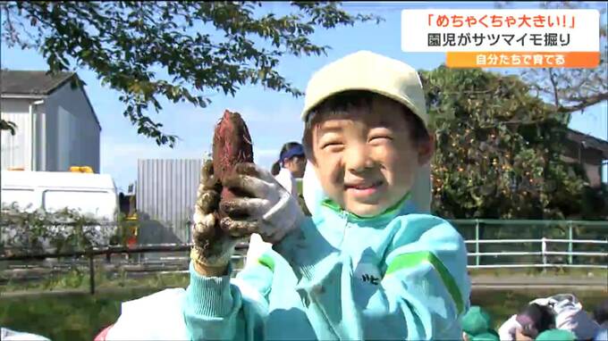 21日、仙台市内の幼稚園児が自分たちで育てたサツマイモの収穫作業に挑戦しました。大きなサツマイモを掘り起こしみんな笑顔で収穫を楽しんでいました。サツマイモ掘りに挑戦したのは、仙台市若林区のドリーム幼稚…