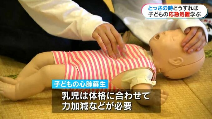 子どもがのどに食べ物やおもちゃなどを詰まらせたら、どうすればいいか?その場でできる応急処置を学ぶ講座が21日、鹿児島市で開かれました。