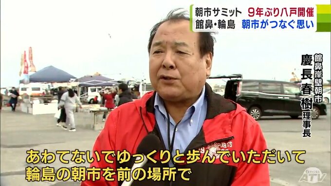 1988年に初めて開催された「全国朝市サミット」。これまで親交を深めてきたからこそ、「輪島朝市」の苦難は東日本大震災を経験した「館鼻岸壁朝市」にとっても他人事ではなく、サミットでは慶長春樹理事長が継続的な支援を宣言しました。