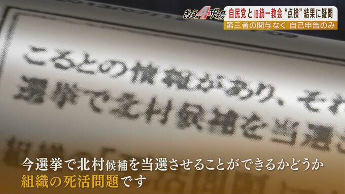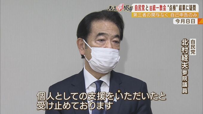 また点検項目の中には、選挙への支援を巡って「ボランティア支援」と、より関係の深い「組織的支援や動員などの受け入れ」という項目があります。教団側の「ボランティア支援」を受けたと申告した議員の1人、安倍派の北村経夫参院議員。