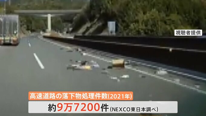 相次ぐ高速道路での落下物。NEXCO東日本管内だけでも年間約9万7200件もの落下物の処理を行っています。