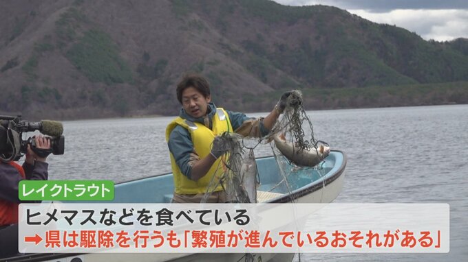 山梨県などの調査でレイクトラウトはヒメマスなどを食べていることがわかっていて、県は駆除を行っていますが繁殖が進んでいるおそれがあるとしています。