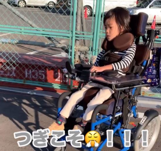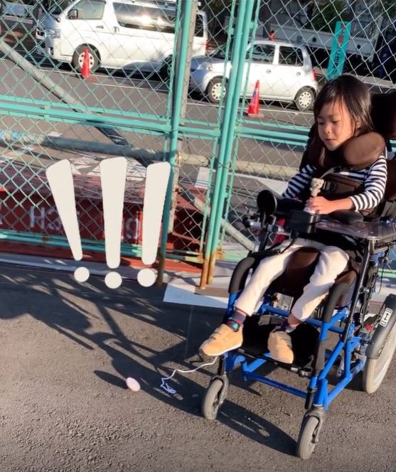 「最初はできなくて、でも3日間くらいやったらできるでしょう と思っていたけどできなかったので、もうこまはやめて外で泥だんごを作ってました そのどろだんごに爪で、こまきらい、と書きました それでお友だちが来て、近くに来たのがわかったから その泥だんごを地面に落としてこわしました でも 今はこまを回す時、車いすを動かしながらこまを投げたら毎回 回せます」