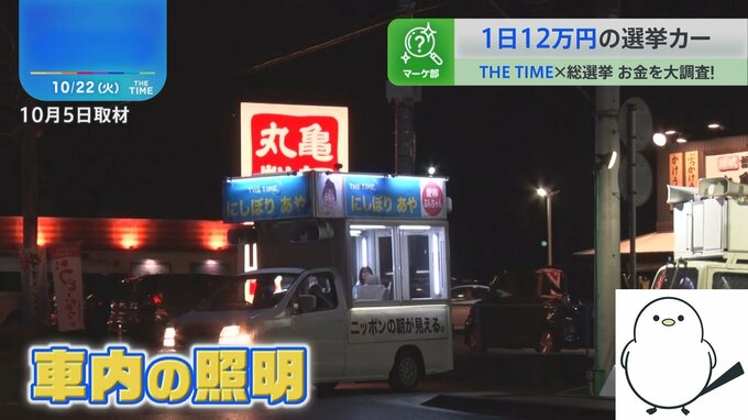夜でも車内の照明を付ければ候補者の姿をバッチリ見せることができるだけでなく…
