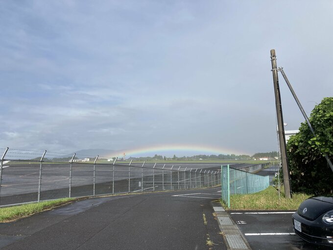 二つの虹の間を離陸する飛行機 「地面に近すぎる虹」どうして? 南日本放送 2024年10月23日(水) 18:14 国内 10分程度で高くなる虹 「ジャスミン」さんの連続写真でも、1枚目の撮影時間が午後1時49分、2枚目が午後1時57分、10分程度のわずかな時間ですが、虹は高くなっています。 撮影時刻は午後1時49分 撮影時刻は午後1時57分