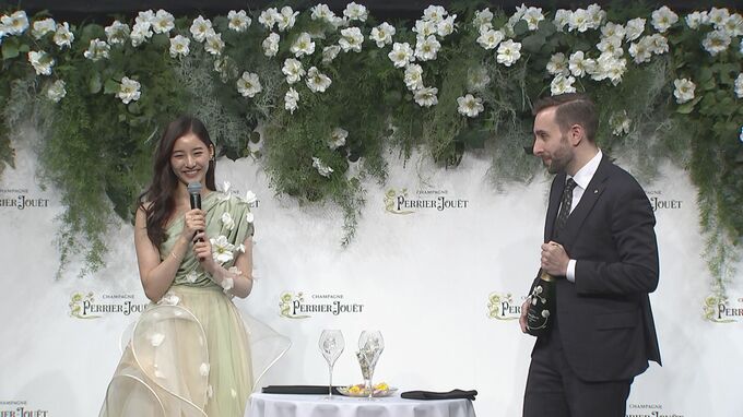 俳優の新木優子さんがプレステージ・シャンパーニュメゾン「ペリエ ジュエ」のジャパンアンバサダー就任発表会に登場しました。