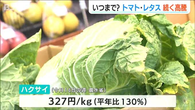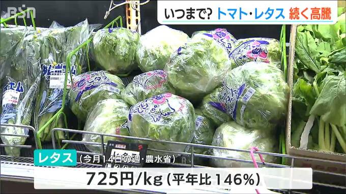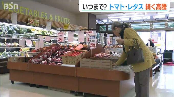 22日に農林水産省が発表した、14日の週の全国470の小売店の店頭価格は、2023年の同じ時期に比べてトマトは平年より35%・レタスが46%・ハクサイが30%・キャベツが27%高くなっていて、輸送費などの関係から新潟では、これ以上に値上がりしているものもありそうです。