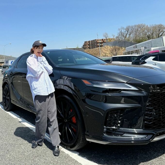 かえひろみさんは「そういえば愛車が黒になりました♥」と、愛車「レクサス RX」と自身の2ショット写真をアップ。