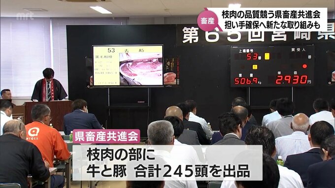 和牛枝肉の品質を競う県畜産共進会が都城市高崎町で開かれました。セリでは、最も評価の高かったグランドチャンピオン牛が1キロ1万290円の高値で落札されました。県畜産共進会は、毎年この時期に開かれているもの…