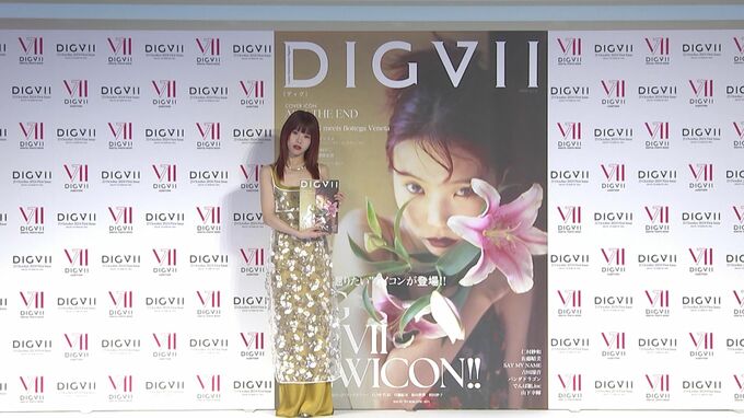 『DIGVII』創刊号の表紙を務めたアイナさんは、秋をイメージしたドレス姿で登場。アイナさんは”この時代で雑誌を新しく生み出すのは勇気のいる勇敢な方々だなと思って心からこの雑誌を尊敬しております。ここに携わっているチームの皆様、体に気を付けて突き進んで欲しい。その時代の幕開けに携わらせていただいたこと本当に幸せです”と挨拶。
