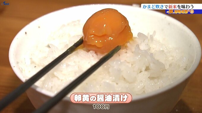 さらに卵黄の醤油漬けなどご飯がすすむ一品を追加で頼むこともできます。おいしさの秘密は、なんといっても「かまど炊き」。元々は薪用のものをガス用に作り変えた特製のかまどで昔ながらの羽釜(はがま)を使って高火力で炊き上げることで米のうまみを最大限に引き出しています。