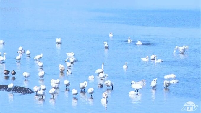 季節の変わり目で朝夕の寒暖差が激しくなってきました。青森県鶴田町の津軽富士見湖には北からの渡り鳥・ハクチョウたちが舞い降り冬の訪れを告げています。数百羽のハクチョウが羽を休めているのは、鶴田町の廻堰…