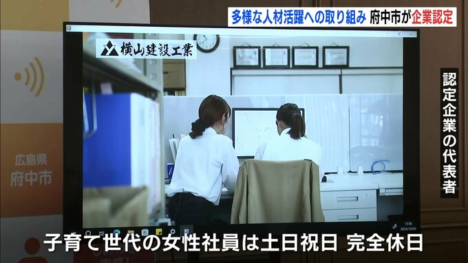 広島県府中市は、多様な人材の活躍に向けて職場環境を整えている企業を認定しています。