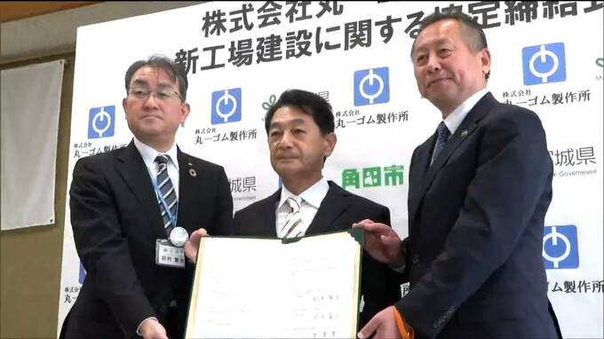 工業用ゴムを製造する企業が宮城県内3か所目となる工場を角田市に建設することになり立地協定が結ばれました。角田市に工場を建設するのは、埼玉県に本社がある「丸一ゴム製作所」で23日は、杉本賢次社長と角田市…