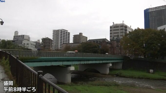 通勤時間帯の午前8時半ごろ、盛岡市中心部でも傘をさして歩く人の姿が見られました。