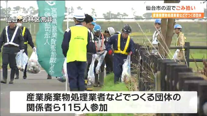 ごみ拾い活動が行われたのは、仙台市若林区荒井の大沼周辺で、産業廃棄物処理業者などでつくる団体の関係者ら115人が参加しました。参加した人たちはおよそ1時間半かけて、たばこの吸い殻やプラスチックのごみなどおよそ260キロを回収しました。