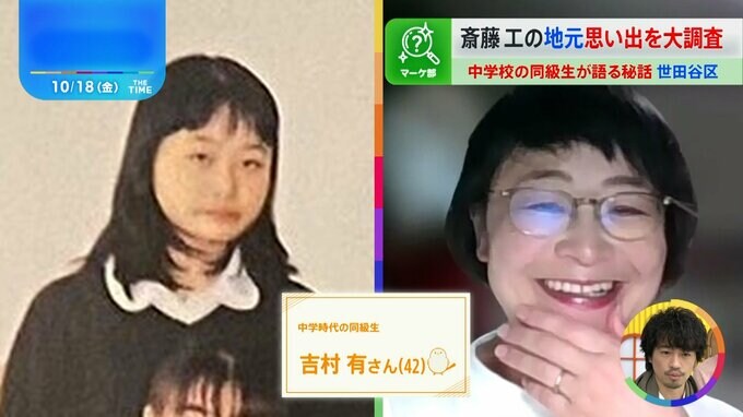 そして転校生だったので友達が少なかったという中学時代に「すごく話しかけてくれて仲良くしていた」というのが同級生の女子、吉村 有さん(42)。