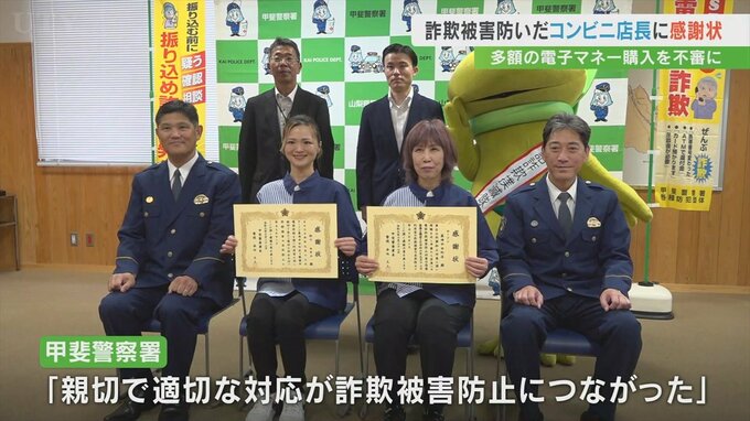 甲斐警察署は親切で適切な対応が詐欺被害の防止につながったと評価しました。