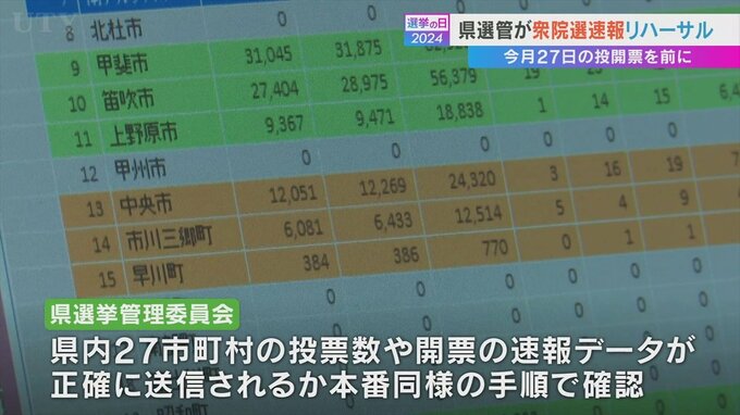 10月27日の衆院選の投票と開票を前に県の選挙管理委員会が速報のリハーサルを行いました。
