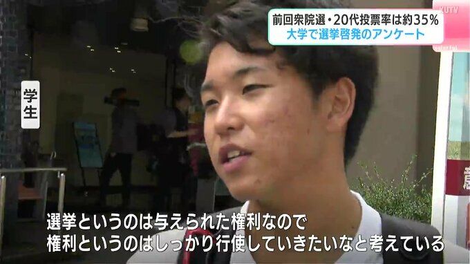 10月27日が投開票の衆議院議員選挙。前回、投票率が低かった若者に、投票に行ってもらおうと、高知県高知市の大学でアンケート調査が行われました。このアンケートは若い世代に投票所に足を運んでもらおうと高知県…