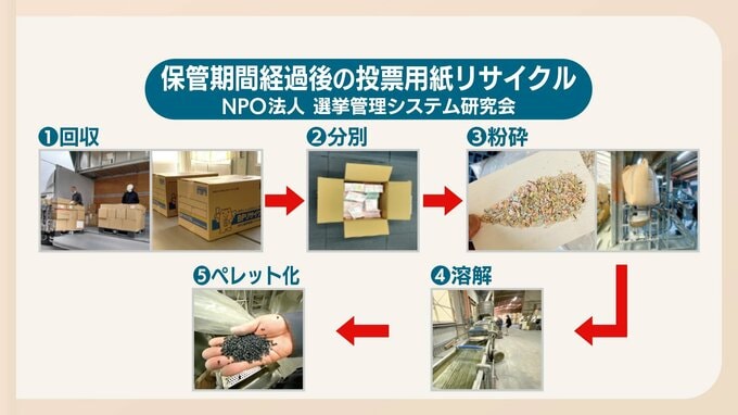 投票用紙を回収してリサイクルしているのは、NPO法人・選挙管理システム研究会。