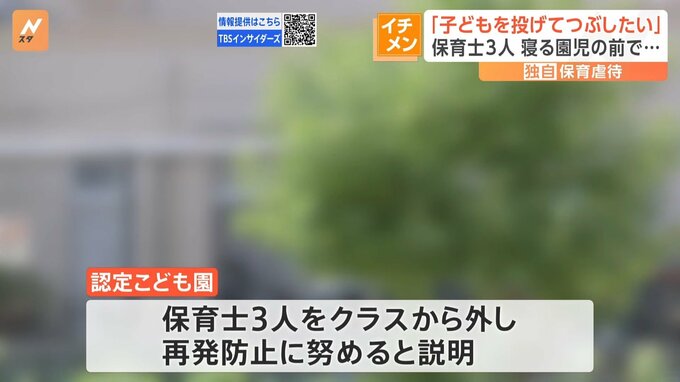 園は、緊急の保護者会(当該クラスのみ)を開き「不適切保育があった」と謝罪。保育士3人をクラスから外すとしたうえで、再発防止に努めると説明しました。