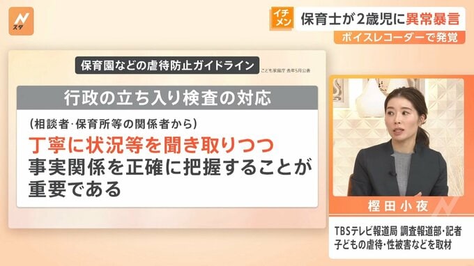現在の虐待の調査は、国のガイドラインの中でも、まずは問題を起こした園が調査することになっていて、行政側は相談を受ける、情報提供を受けるという受身側になっています。