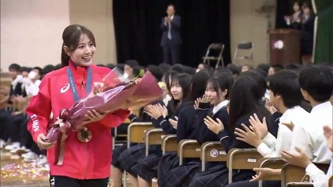 バドミントンダブルス女子で銅メダルを獲得した青森山田高校出身の志田千陽選手が23日、“第2のふるさと”と語る青森市で、母校や栄誉賞の授与式に臨みメダル獲得後の心境を語りました。