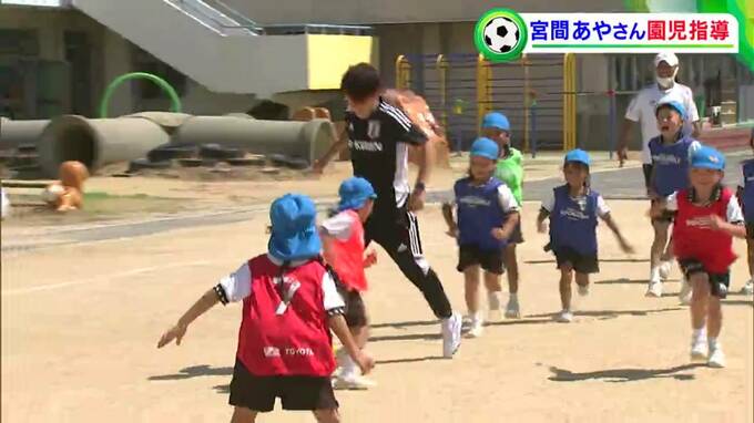岡山湯郷ベルで活躍し、女子サッカー日本代表・なでしこジャパンを世界一に導いた宮間あやさんが、香川県三木町の幼稚園でサッカー教室を行いました。日本サッカー協会が開いた普及イベントです。