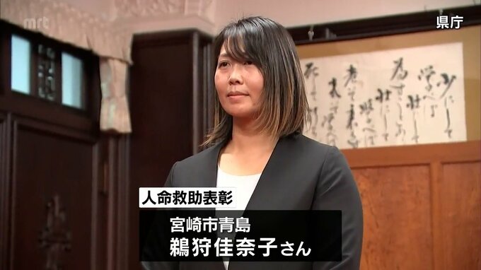 今年8月に宮崎市の木崎浜で起きた水難事故で意識不明の男性を救助したとして、宮崎市の女性が日本赤十字社から県内初となる「人命救助表彰」を受けました。表彰を受けたのは、宮崎市青島の鵜狩佳奈子さんです。鵜…
