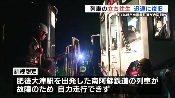 列車の立ち往生を想定したJR九州と南阿蘇鉄道の初めての合同訓練が、10月24日未明にかけて行われました。南阿蘇鉄道の運転士「この列車ただいま車両トラブル発生のため停止いたしております」南阿蘇鉄道は去年7月…