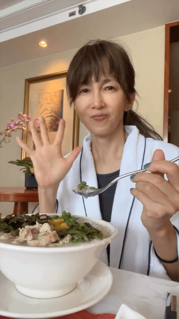 工藤静香さんは「この豪華なお粥、体が疲れているときにとても良いと思います♥♥」と、ファンに呼びかけています。