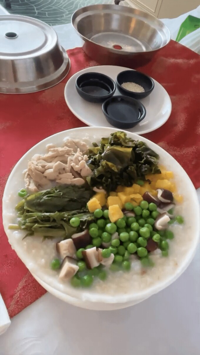 そして「私の中でのお粥は、お米がお米おかずはおかず。もしくは、芋粥とかを作るときには一緒に混ぜて作っていました。」「このお粥の出し方すごくいいですね!上に乗っかっているものも冷めないし、全部が熱々でいただけます。そして、何よりルックスも豪華でとても楽しいです。」と、感激した様子を綴りました。