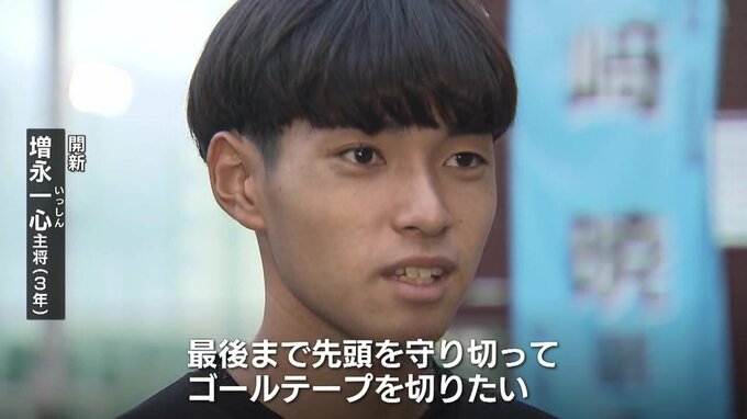 開新 増永一心主将(3年)「1区から先頭を譲らず、最後まで先頭を守り切って、ゴールテープを切りたいと思います」