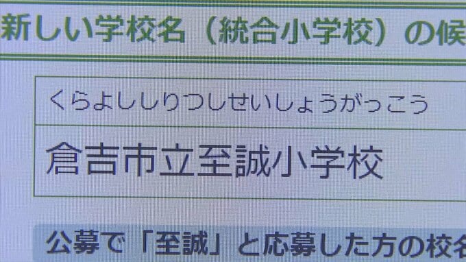 「ホームページにはこう書いてあります。『341件の応募があり、119種類の校名案が集まりました。「打吹」「倉吉第一」「倉吉中央」「羽衣」などがありました。』…このなかに「至誠」は登場していませんね」