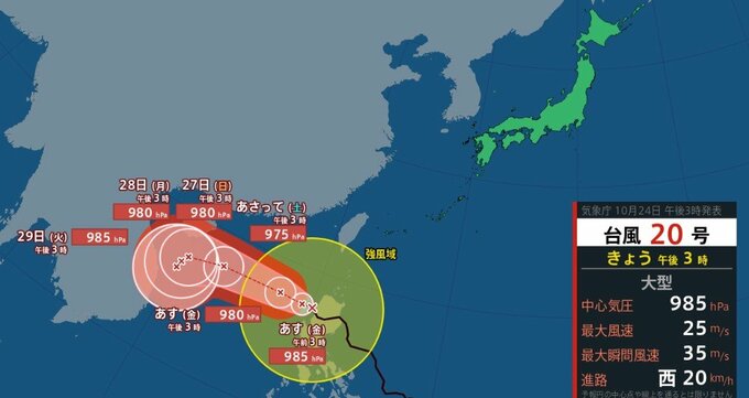 沖縄・奄美では24日、台風20号周辺の暖かく湿った空気の影響で局地的に滝のような雨が降り、大雨になりました。日本気象協会tenki.jpによりますと、あす25日にかけてさらに雨量が増える見込みで土砂災害などに警戒が必要です。また、マリアナ諸島に発生した熱帯低気圧は、あす25日午後3時までに台風21号になる予想です。