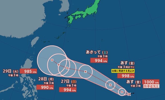 きょう24日午前9時、マリアナ諸島に発生した熱帯低気圧は、今後24時間以内に台風21号に発達する見込みです。