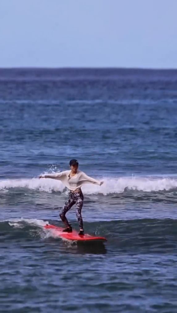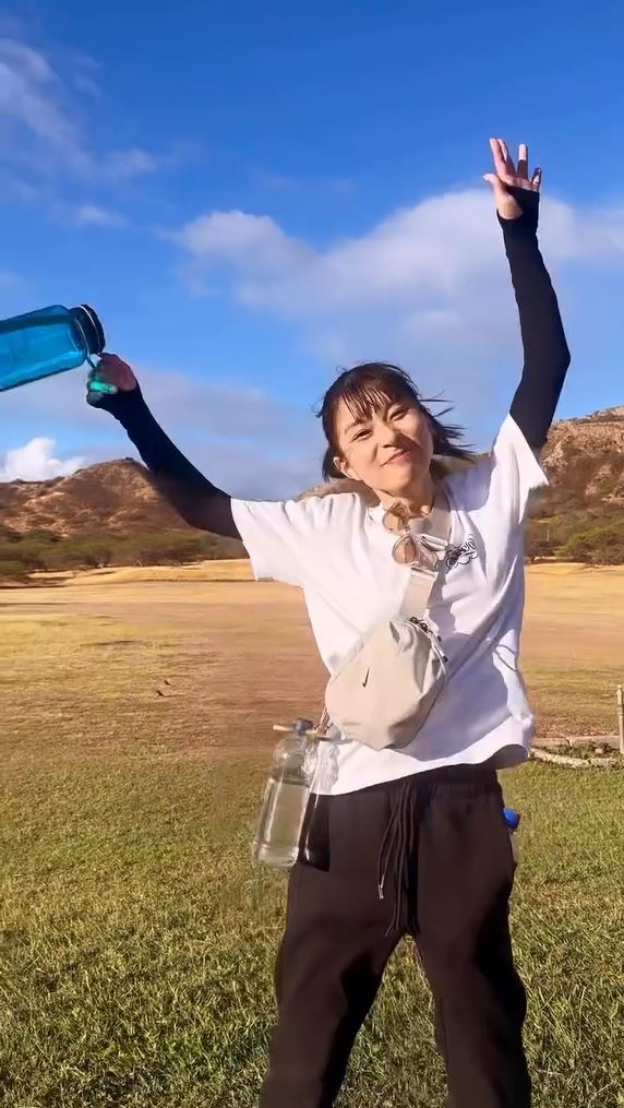 その動画に芳根さんは、サーフィンで見事にテイクオフを決めてライディングする姿や、トロリーに乗って街を流す笑顔、ダイヤモンドヘッドと思われる山道を登って撮影した絶景や、草原で飛び跳ねる姿、そしてワイキキビーチではデューク・カハナモク像の周りでポーズをとったり、夜空に上がる花火を見上げたりと、短い再生時間の中に早回しでぎゅうぎゅうにハワイでの体験を詰め込んでいます。