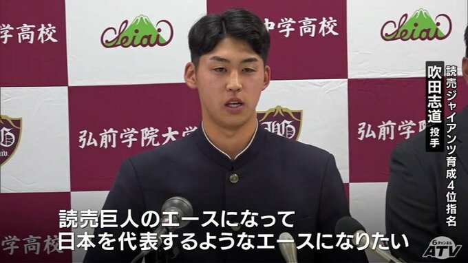 金渕投手の指名から約5分後、大鰐町出身の吹田志道投手が「読売ジャイアンツ」から育成4位で指名を受けました。