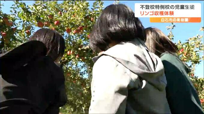 宮城県白石市の不登校特例校に通う子どもたちが25日、市内の果樹園でリンゴの収穫体験を行い農業への理解を深めました。