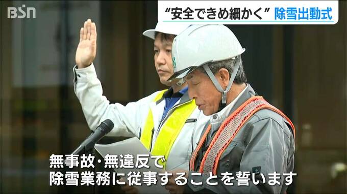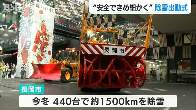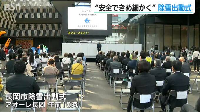 雪のシーズンを前に新潟県 長岡市で除雪車の出動式が行われ、市民の生活を守るきめ細かい除雪を誓いました。