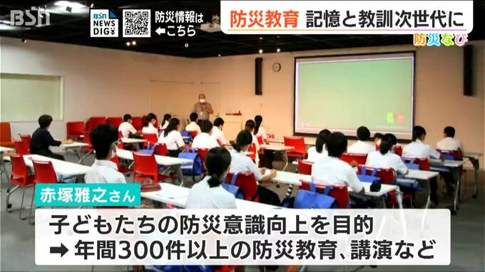 赤塚雅之さんは学校に合わせたプログラムを作成し、年間300件以上の防災教育を担当したりフォーラムでの講演などを行っています。